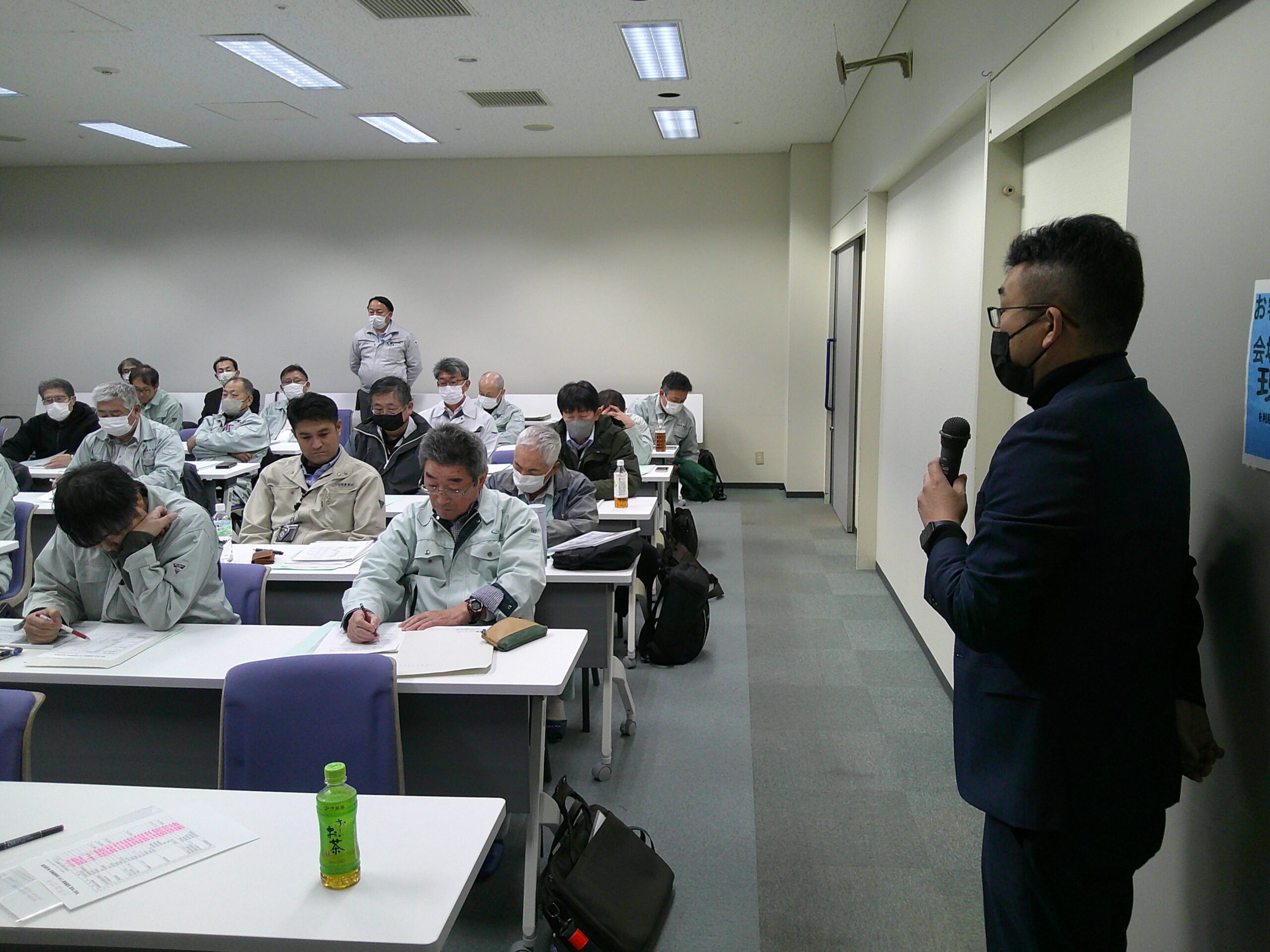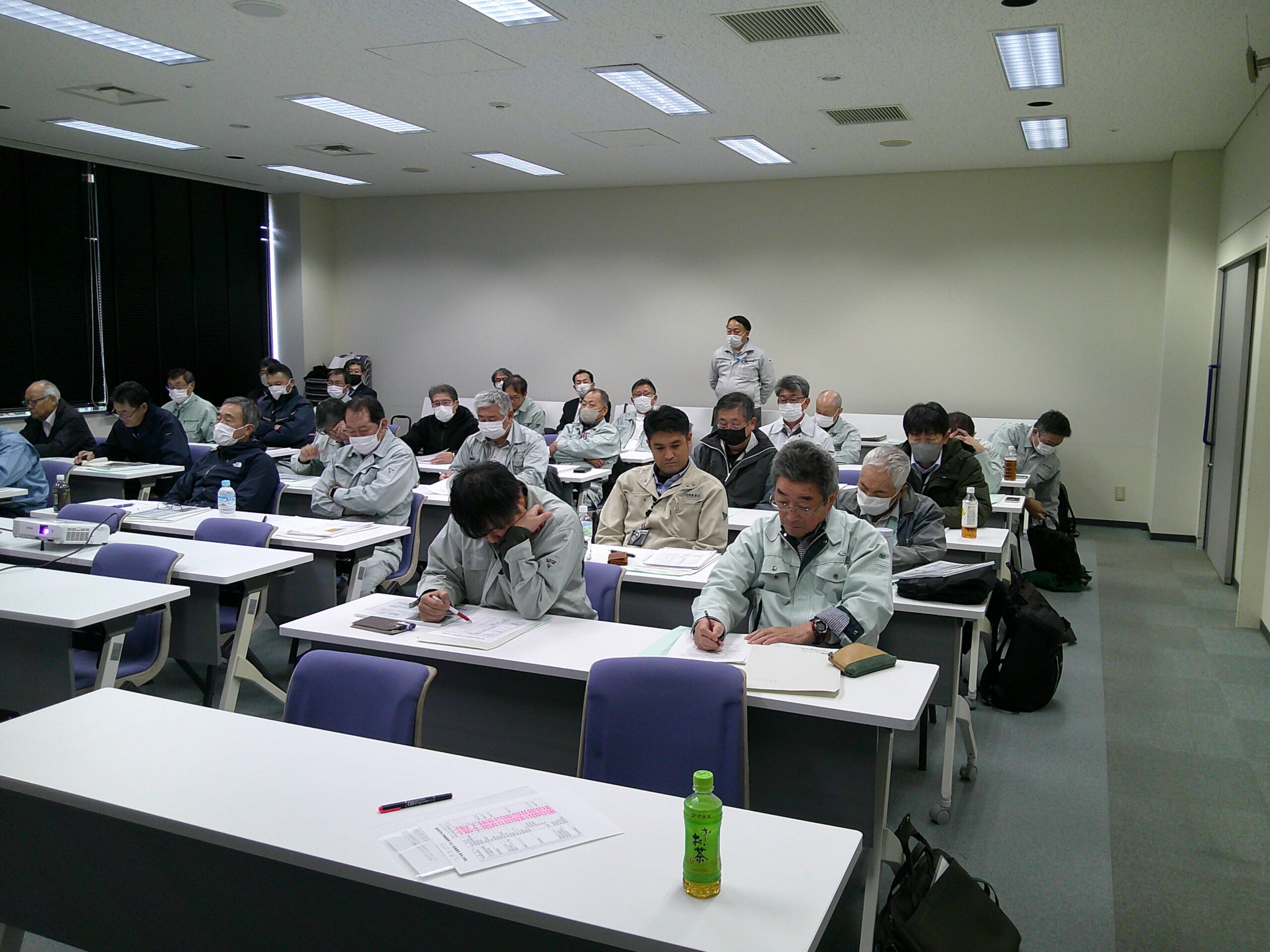 日 時 :令和7年11月21日(金)13:00~16:50 場 所 :中央地区老人福祉エリア 研修室 受講者 :30名 内 容 :(1) 補強材の角度調整が容易な地山安定化工法について 講師:イビデングリーンテック㈱ 東北支店 技術課長 北嶋 智哉氏 (2)グラウンドアンカー工法とアンカー用受圧板について 講師:㈱ケーティービー 技術部長 小松 晃二氏 (3)法面工事におけるICT活用について 講師:イビデングリーンテック㈱ 開発センター 設計部長 森本 泰樹氏 遠藤委員長挨拶